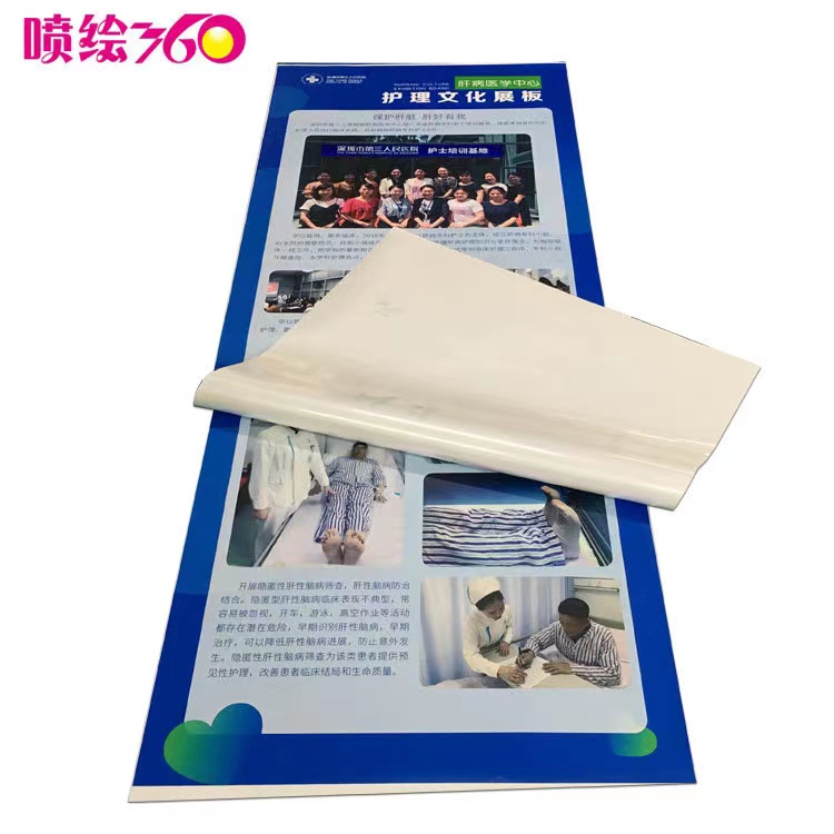 第二類(lèi)就是戶內(nèi)寫(xiě)真了,戶內(nèi)寫(xiě)真當(dāng)然是用戶內(nèi)寫(xiě)真機(jī)來(lái)噴畫(huà)了。戶內(nèi)寫(xiě)真的材料有背面帶膠的和不帶膠的,背面帶膠的就叫背膠,有些人口中背膠說(shuō)的其實(shí)就是背膠PP合成紙,就是背膠寫(xiě)真啦,背面沒(méi)有膠就叫無(wú)背膠PP合成紙,常用作x展架、易拉寶、門(mén)型展架的畫(huà)面。