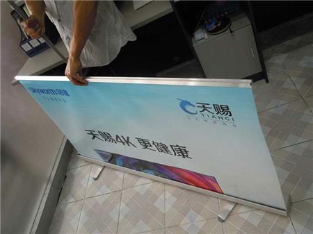 易拉寶需要注意的:由于各地溫度原因,畫面兩側(cè)容易造成細(xì)微卷曲,建議畫面在長時(shí)間不使用時(shí),請將畫面收起保存,另外,針對易拉寶畫面卷曲的問題,經(jīng)過多年的發(fā)展改進(jìn),已經(jīng)不會(huì)出現(xiàn)類似的問題.
